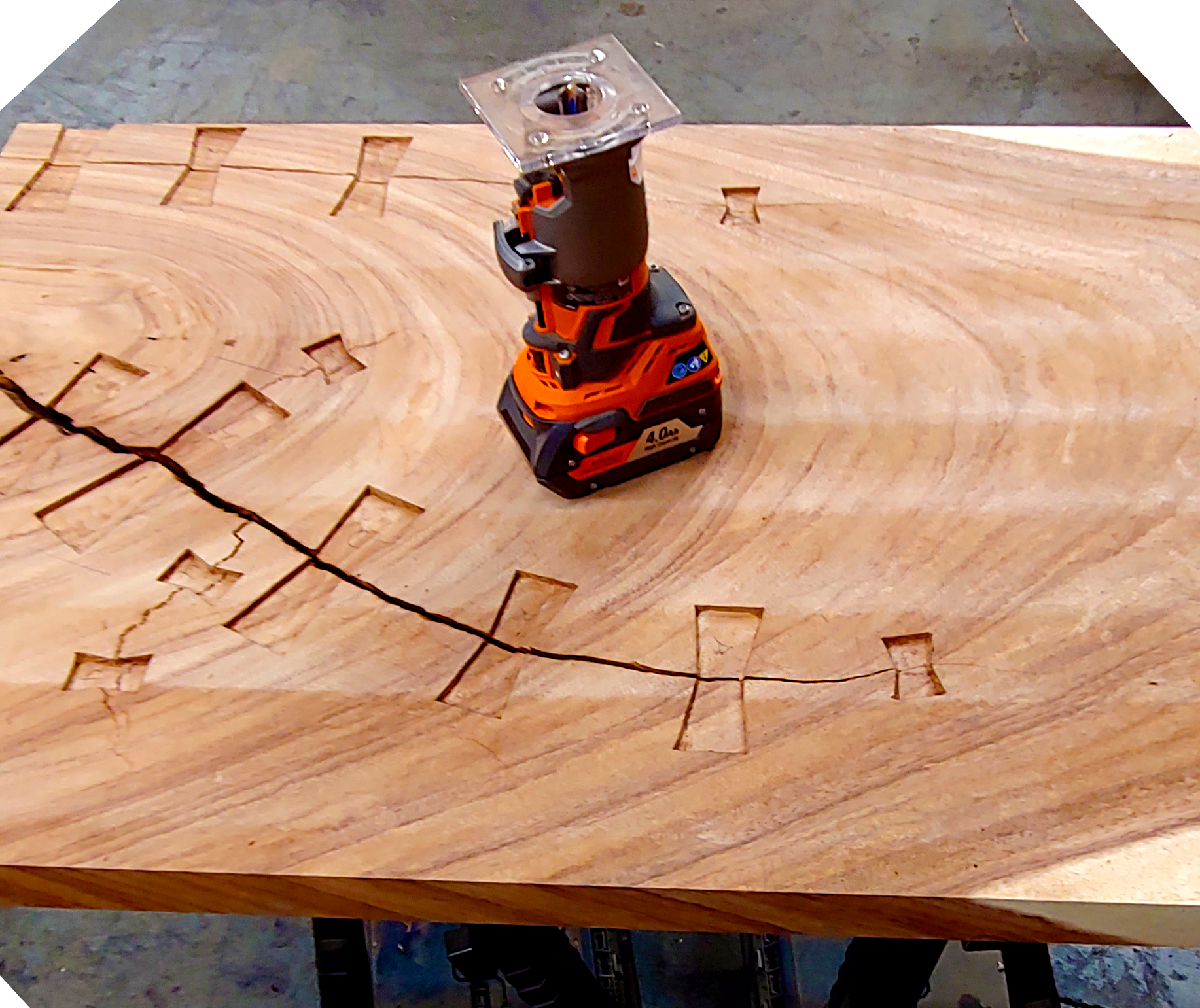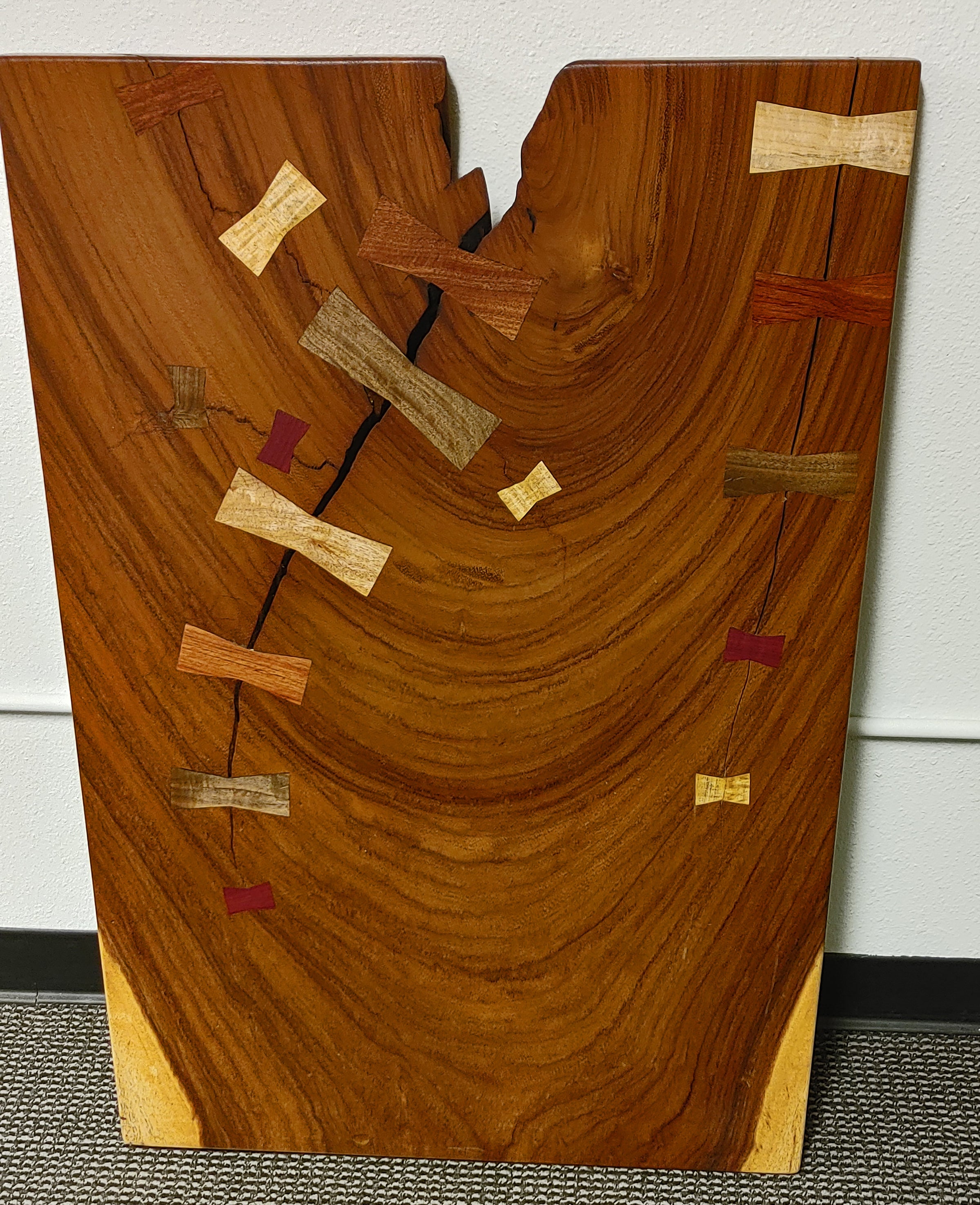 Like this Bowtie Table, with its many bowties inlayed to help keep the slab together and doing so with style.